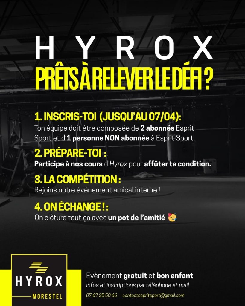Vous avez entendu parler de l’Hyrox, la discipline qui cartonne dans le monde entier, mais vous n’avez jamais osé vous lancer ? Esprit Sport 38 crée l’événement dans sa salle de Morestel pour vous prouver que ce défi est à la portée de tous !